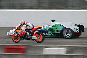 特にF1マシンとバイクの並走は珍しく