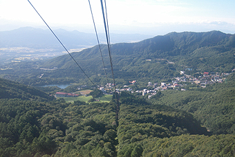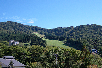 緑に満ちた山々とゲレンデが見えた