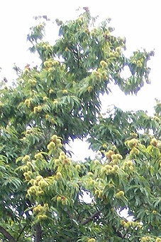 まだ青い いが栗が沢山生っていた