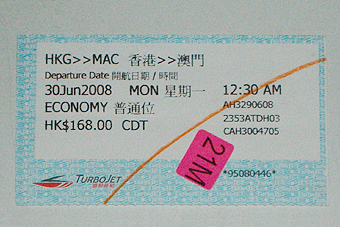 香港からマカオへ行く際も