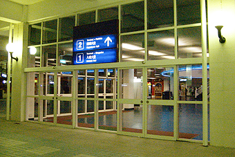 直進してガラスのドアから外へ 出る