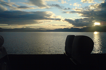 夕陽が映える支笏湖を離れて