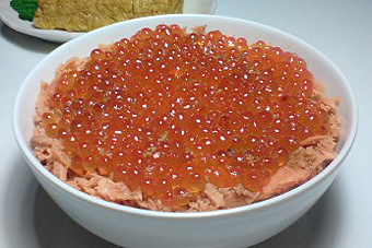 昼飯は鮭ハラスといくら丼